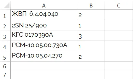 xls или xlsxартикулы товаров. Только цифры и буквы