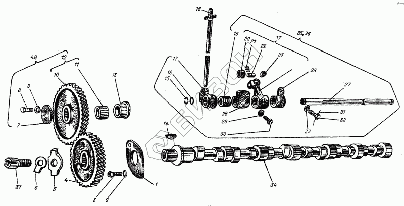 | 34 | 6Т2-0501-3 | Вал распределительный |