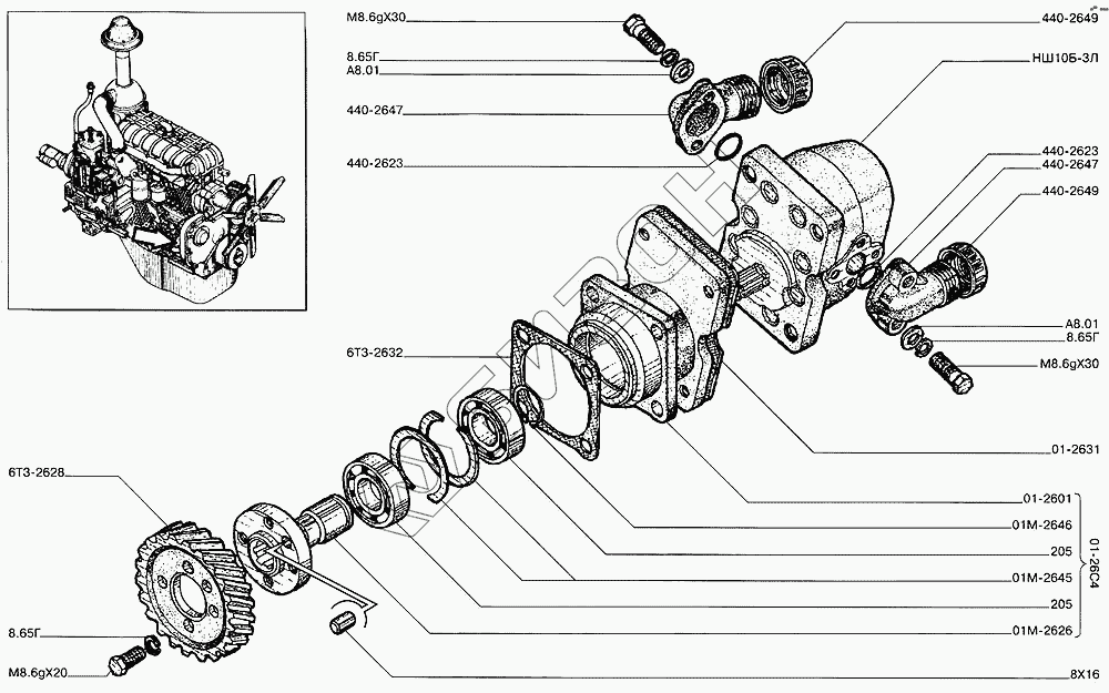Графический каталог запасных частей к технике: Алтайдизель А-41. Насос шестеренчатый НШ-10