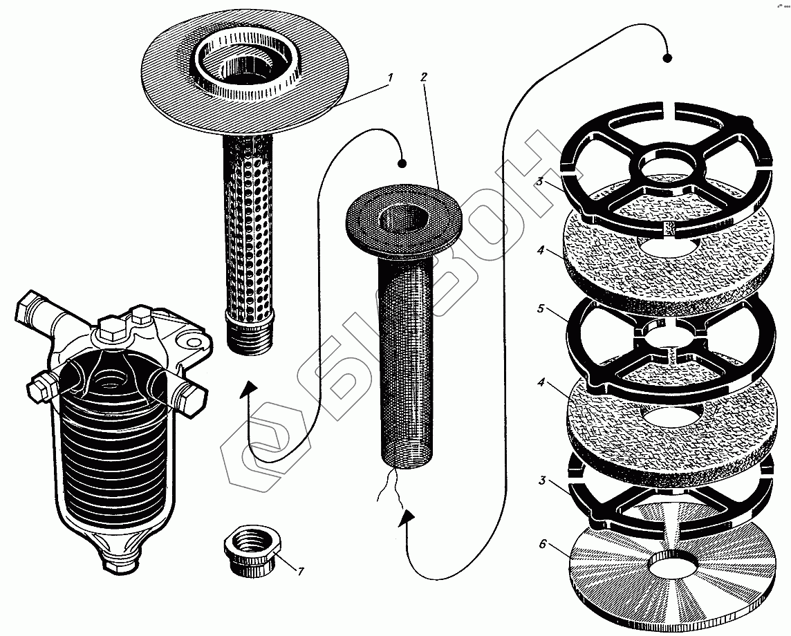 Графический каталог запасных частей к технике: Барнаултрансмаш Дизели Д12С1. Фильтрующий элемент