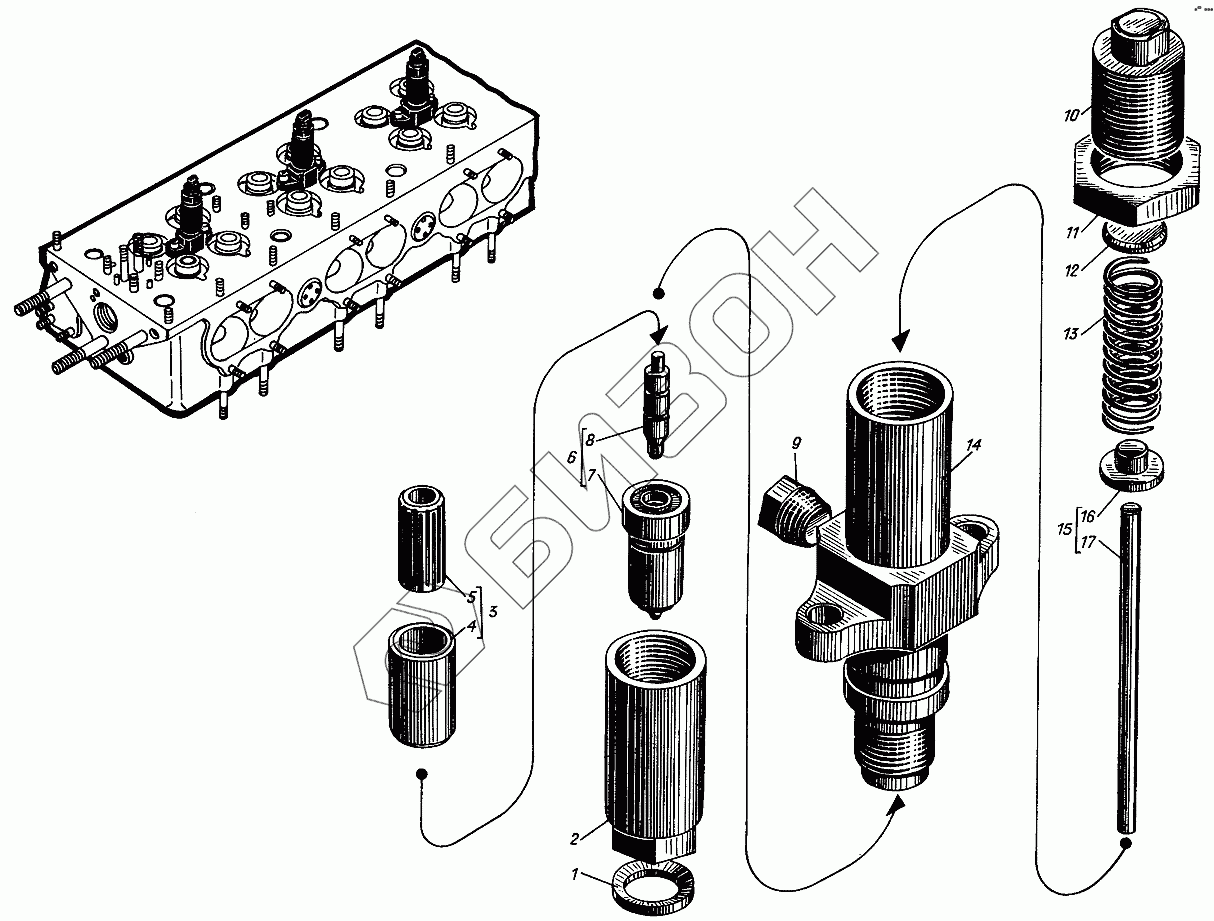 Графический каталог запасных частей к технике: Барнаултрансмаш Дизели Д12С1. Форсунки