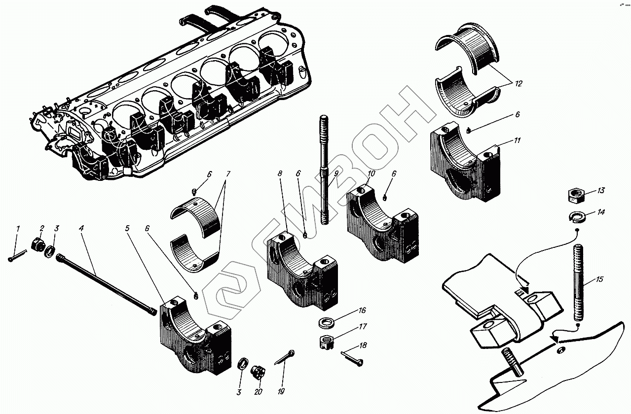 | 9 | 301-18-2А | Шпилька крепления крышек подшипников |