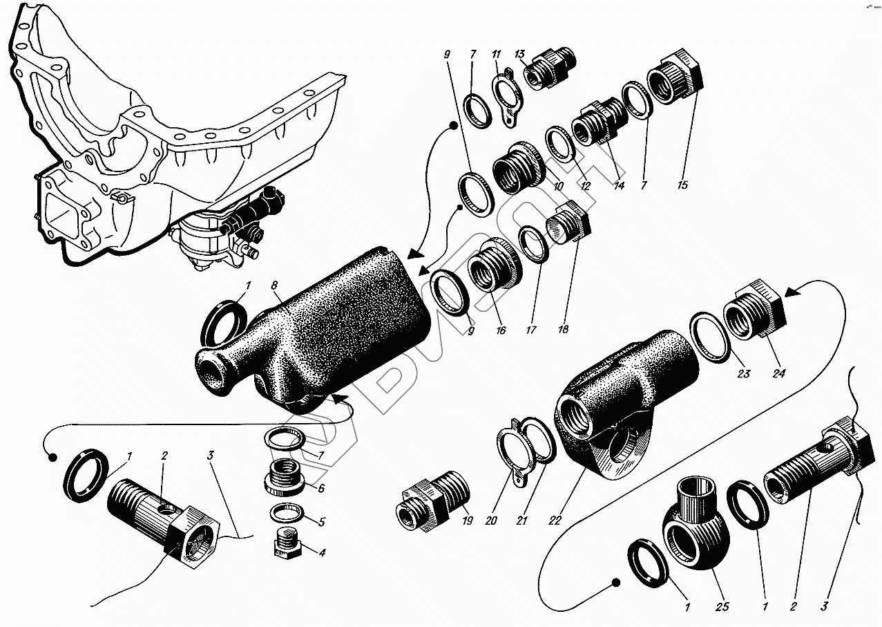 | 22 | сб.537-140 | Патрубок отвода масла |