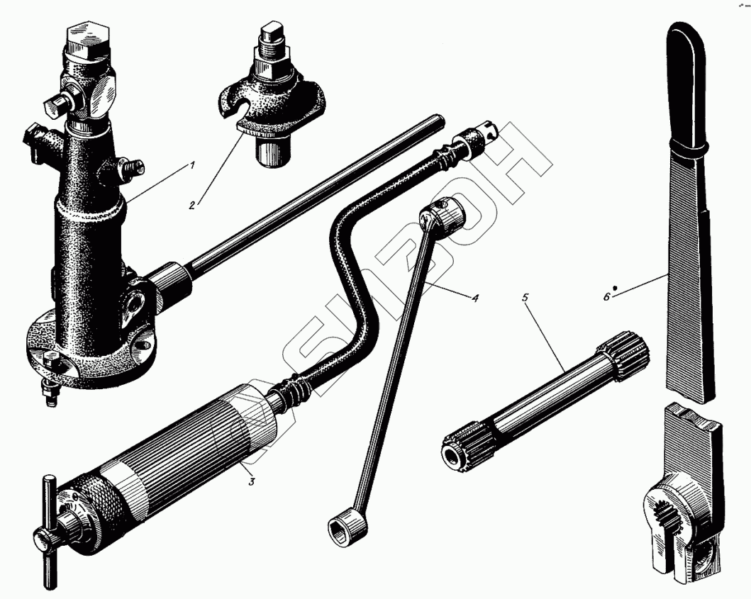 Графический каталог запасных частей к технике: Барнаултрансмаш Дизели Д12С1. Приспособление для технического обслуживания дизеля