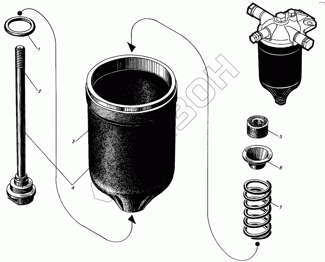 Графический каталог запасных частей к технике: Барнаултрансмаш Дизели Д12С1. Стакан топливного фильтра