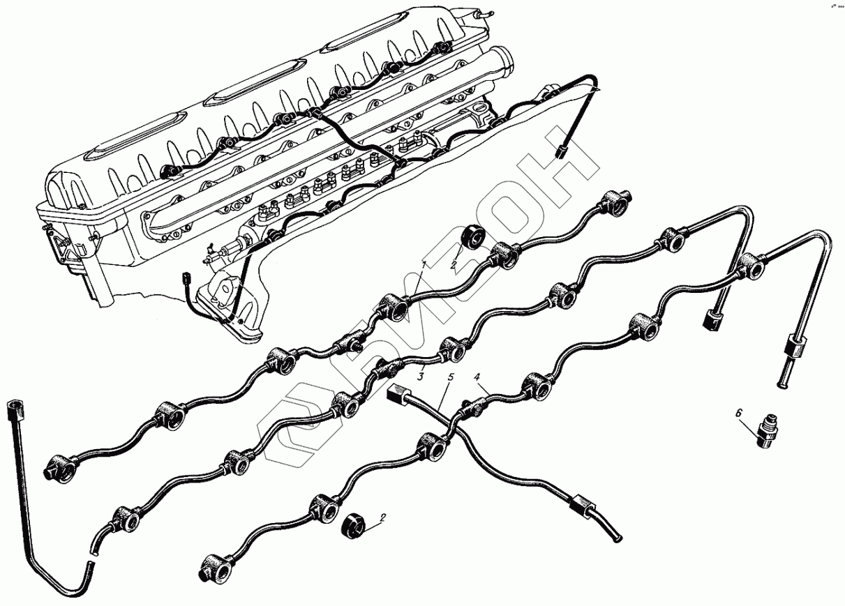 Графический каталог запасных частей к технике: Барнаултрансмаш Дизели Д12С1. Трубки слива топлива