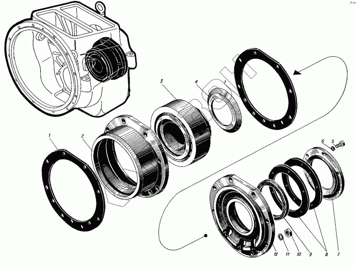 | 12 | 525-117-1 | Крышка крепления ведомого вала реверса |