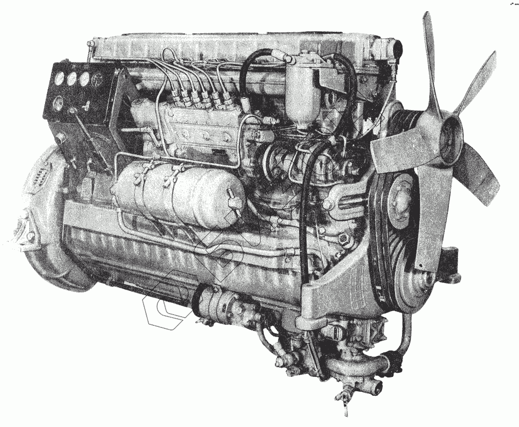 Графический каталог запасных частей к технике: Барнаултрансмаш Дизели Д6С1. Дизель 1Д6-150 (вид слева)