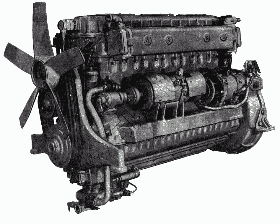 Графический каталог запасных частей к технике: Барнаултрансмаш Дизели Д6С1. Дизель 1Д6-150 (вид справа)