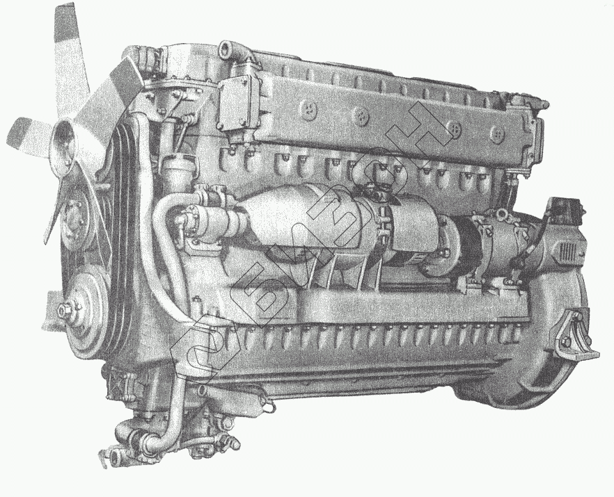 Графический каталог запасных частей к технике: Барнаултрансмаш Дизели Д6С1. Дизель 1Д6БА (вид справа)