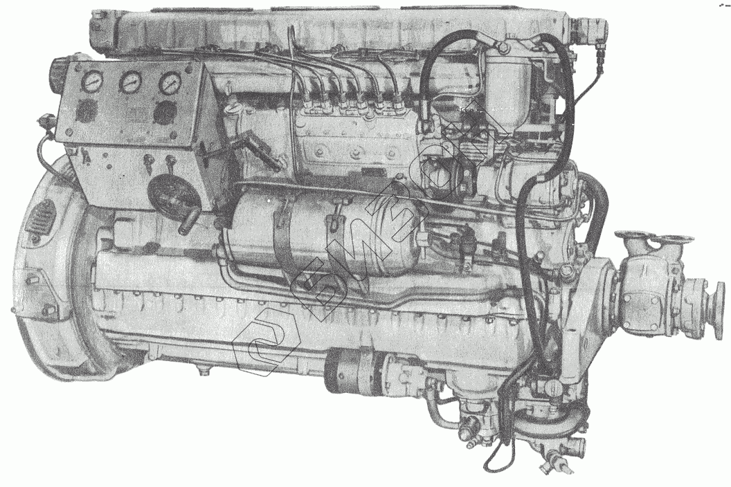 Графический каталог запасных частей к технике: Барнаултрансмаш Дизели Д6С1. Дизель 7Д6-150АФ (вид слева)