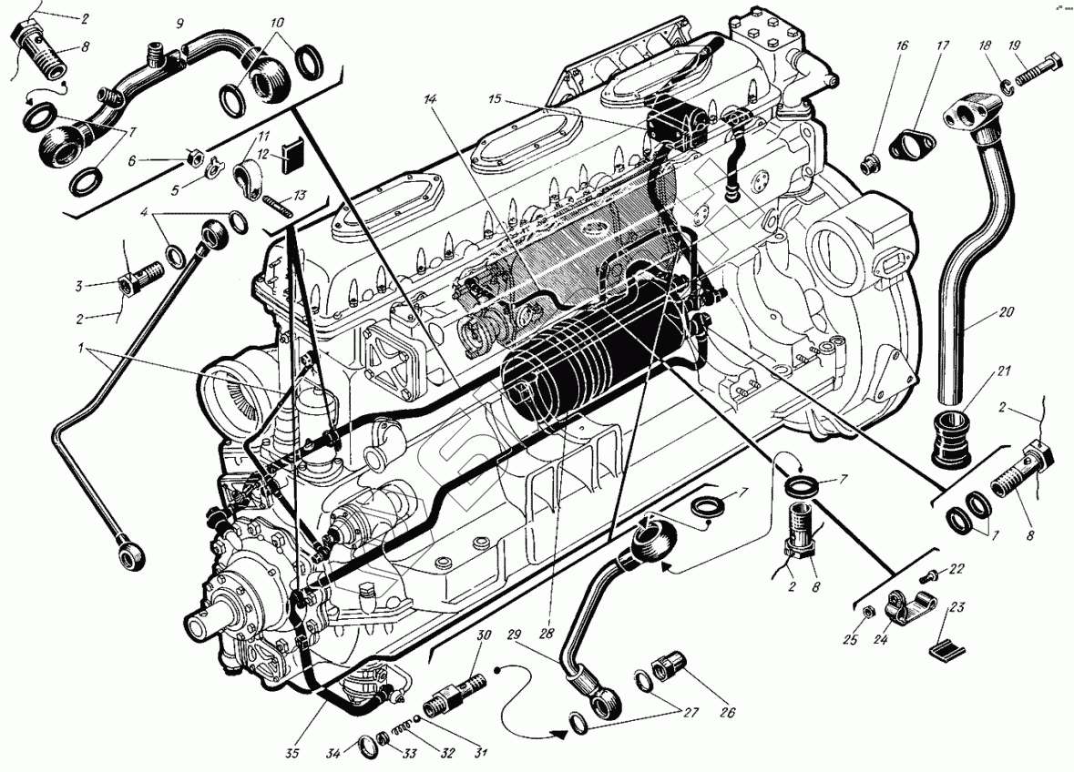 | 1 | сб.520-32-2 | Трубка к распределительным валам и приводу генератора |