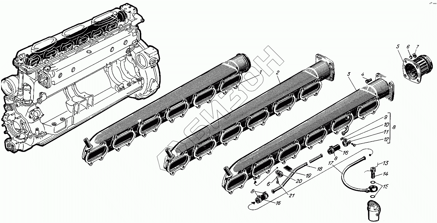 | 3 | сб.519-01-9 | Коллектор впускной правый |