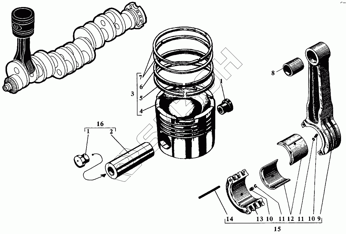 | 16 | сб.504-04-07Р | Поршневой палец с заглушками |
