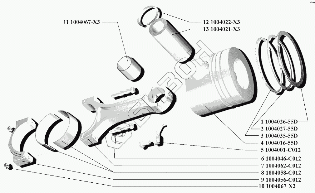 | 12 | 1004022-X3 | Кольцо стопорное поршневого пальца |