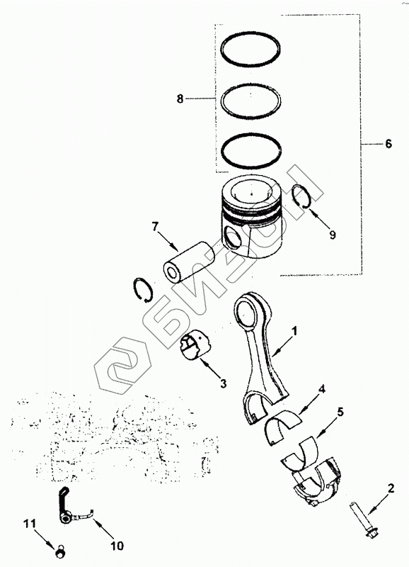 | 6 | 4955642 | Комплект поршней двигателя |