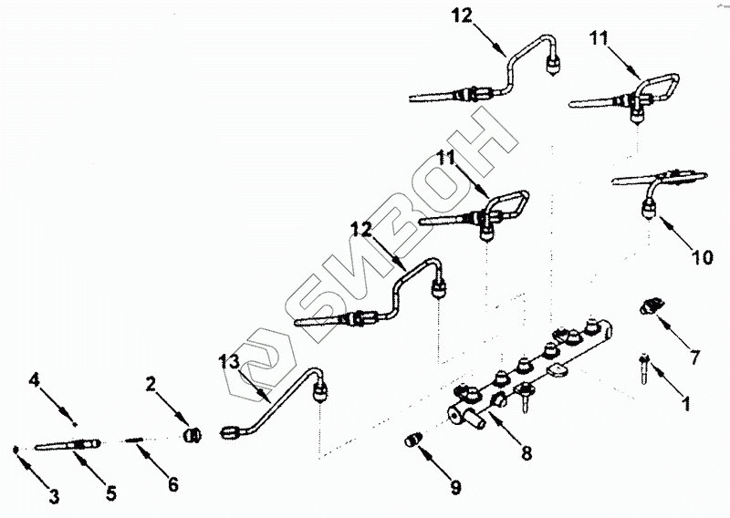 | 12 | 3978032 | Трубка подвода топлива к форсунке |