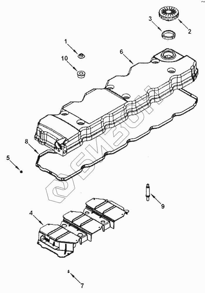 Графический каталог запасных частей к технике: Cummins 6ISBe4-300. Расположение крышки клапанов
