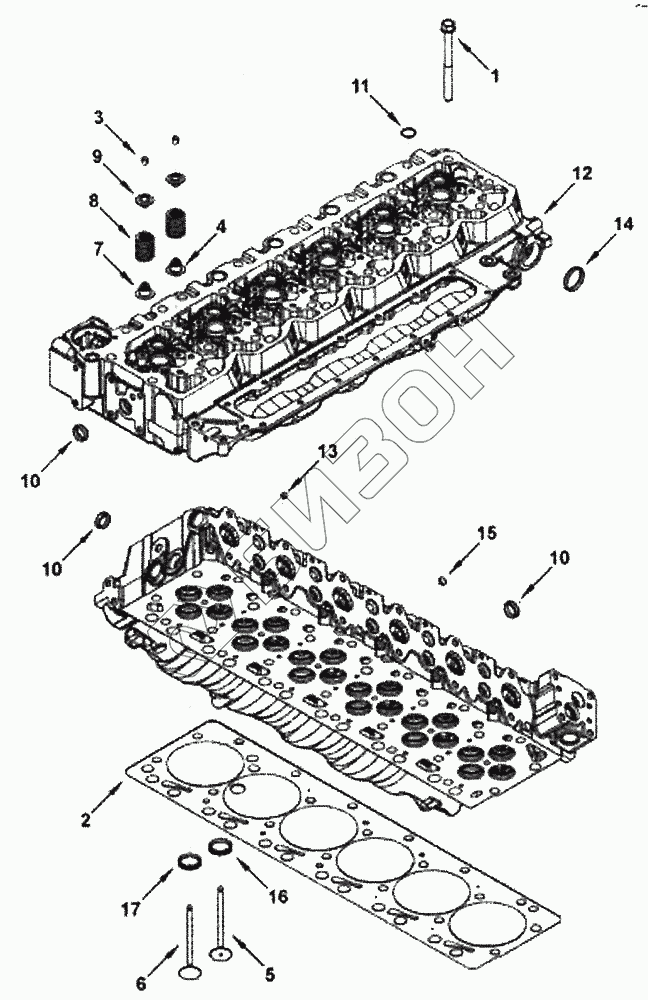 Графический каталог запасных частей к технике: Cummins 6ISBe-270B. Головка цилиндров