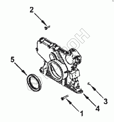 Графический каталог запасных частей к технике: Cummins 6ISBe-270B. Крышка переднего блока шестерен