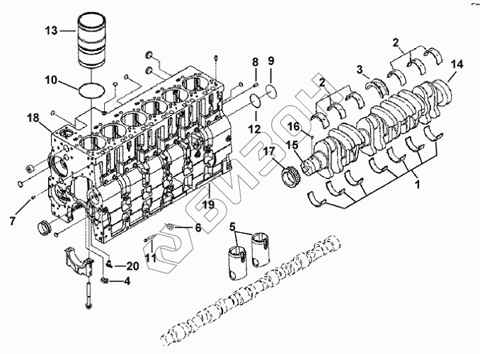 Графический каталог запасных частей к технике: Cummins L340-20. Блок цилиндров