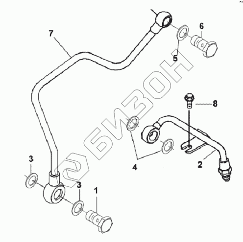Графический каталог запасных частей к технике: Cummins L340-20. Трубки топливные дренажные