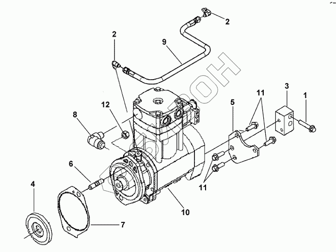 Графический каталог запасных частей к технике: Cummins L340-20. Установка компрессора