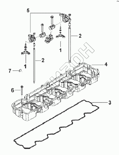 Графический каталог запасных частей к технике: Cummins L375-20. Коромысло клапана и штанги толкателя