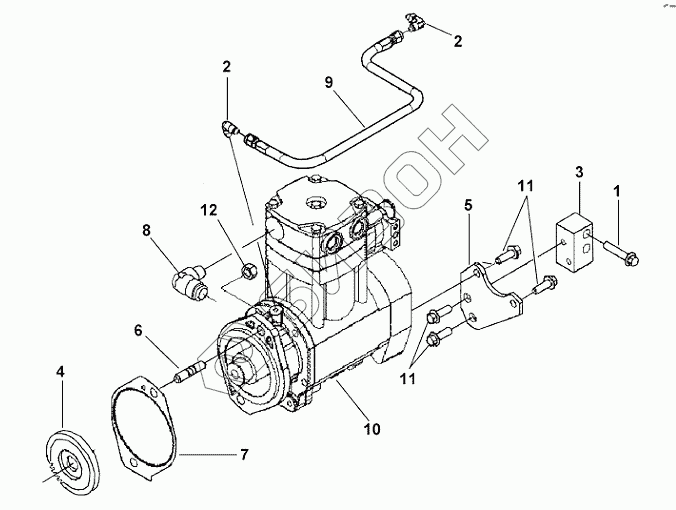 Графический каталог запасных частей к технике: Cummins L375-20. Установка компрессора