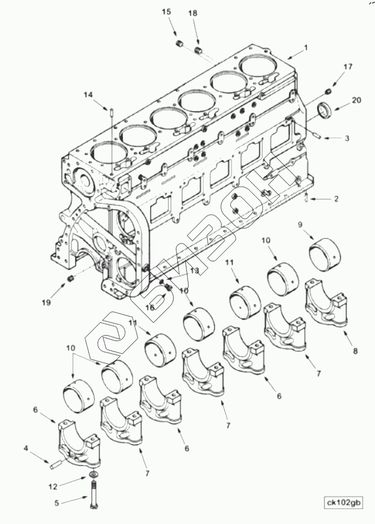 | 6 | 3008047 | CAP, MAIN BEARING |