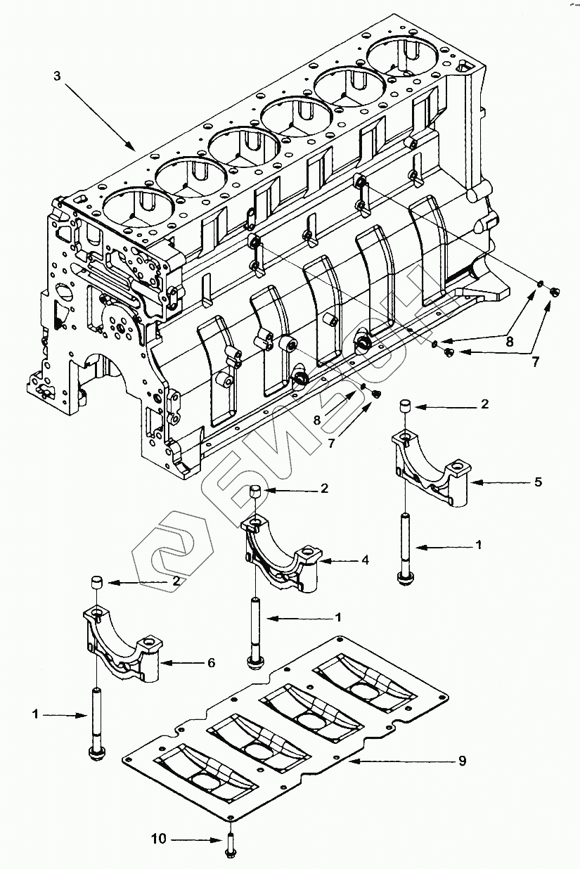 Графический каталог запасных частей к технике: Cummins QSX-15 I. BB1836 Cylinder Block