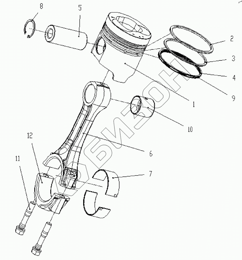 Графический каталог запасных частей к технике: DongFeng CY4102-C3C. Шток поршня