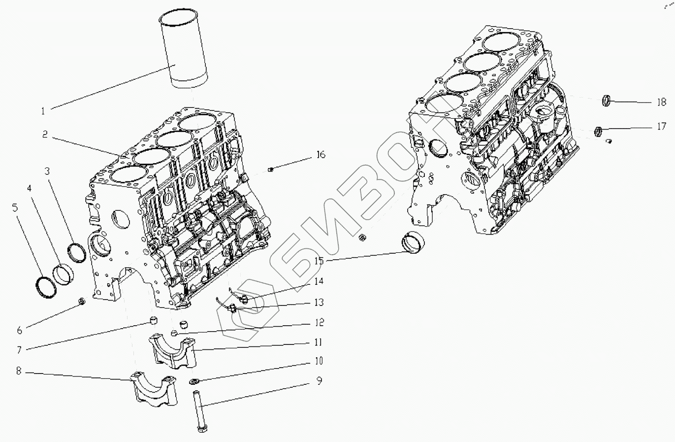 Графический каталог запасных частей к технике: DongFeng CY4102-C3C. Соединительная часть блока-картера