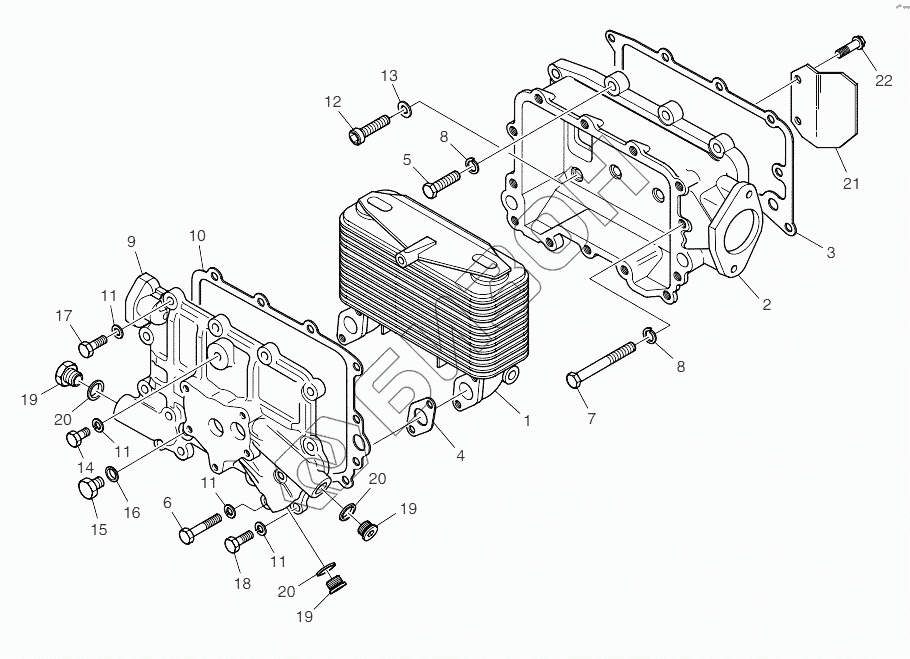 Графический каталог запасных частей к технике: Doosan P158FE. Oil Cooler