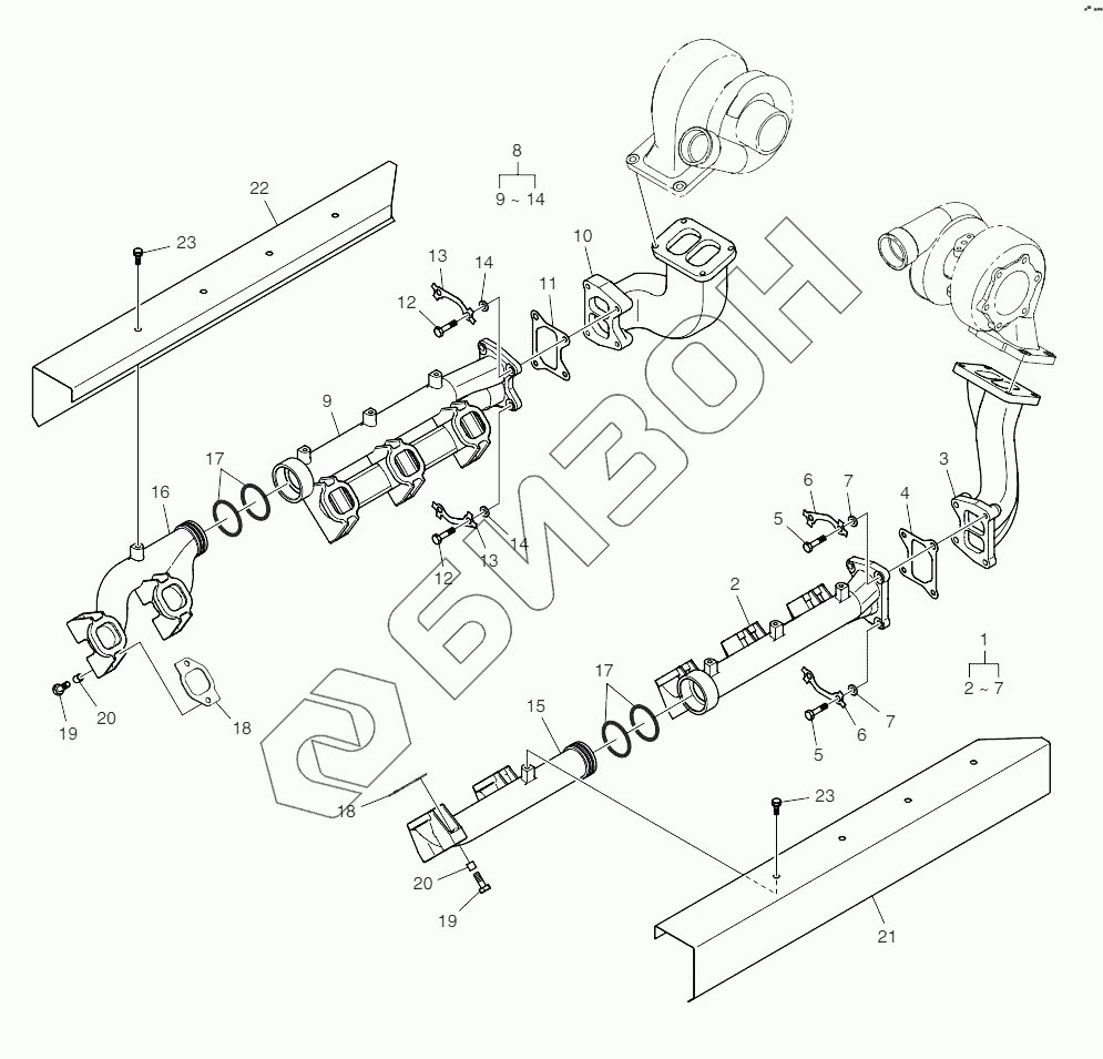 | 8 | 65.08100-6082A | Exhaust manifold assy |