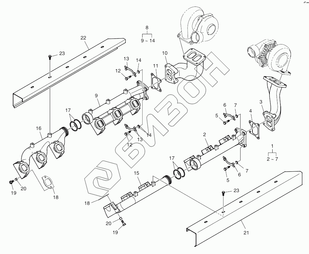 | 8 | 65.08100-6082A | Exhaust manifold assy |