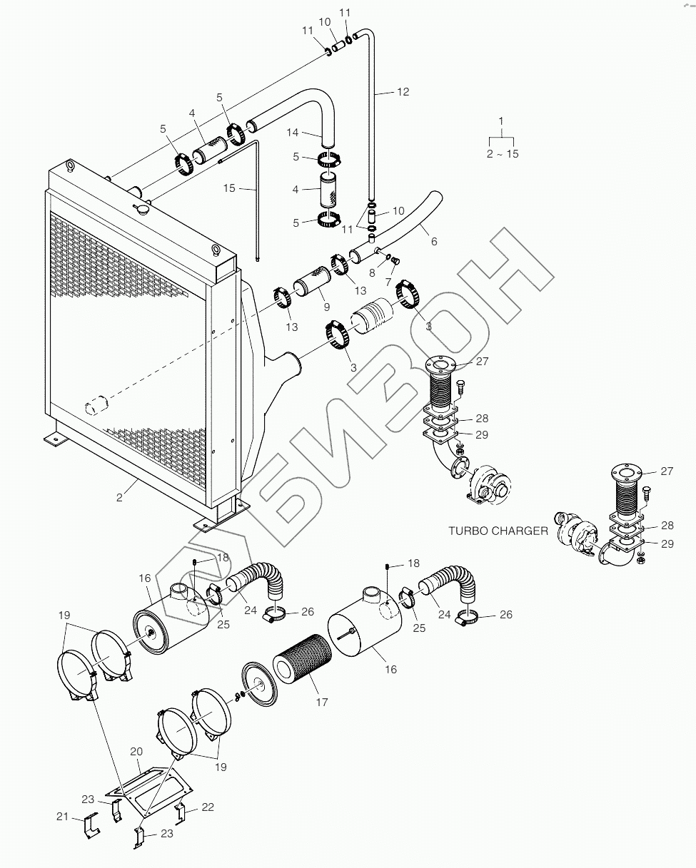 | 1 | 65.06100-8008 | Radiator and inter cooler assy |