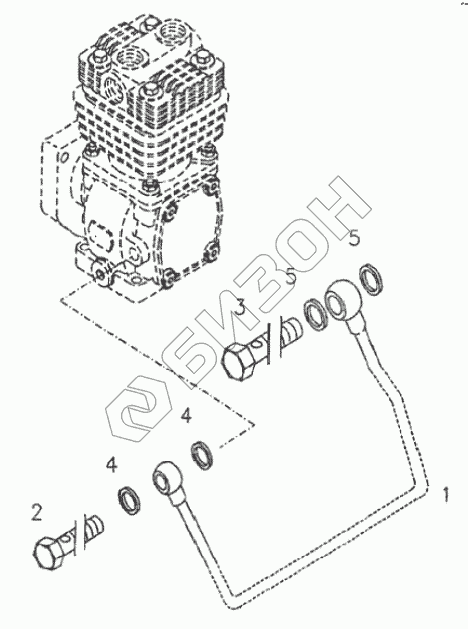 Графический каталог запасных частей к технике: FAW BF4M1013. AIR COMPRESSOR LUBRICAT OIL LINE