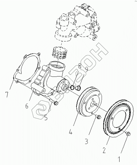 Графический каталог запасных частей к технике: FAW BF4M1013. COOLANT PUMP