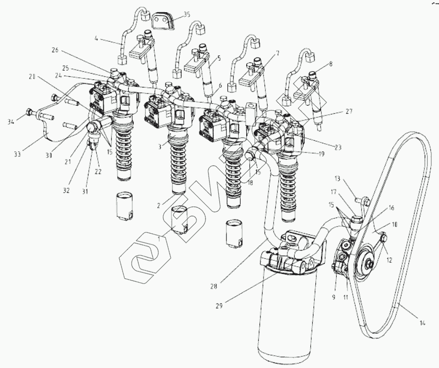 | 23 | 1104100-66D | Топливопровод одинарного насоса с электронным управлением в сборе |