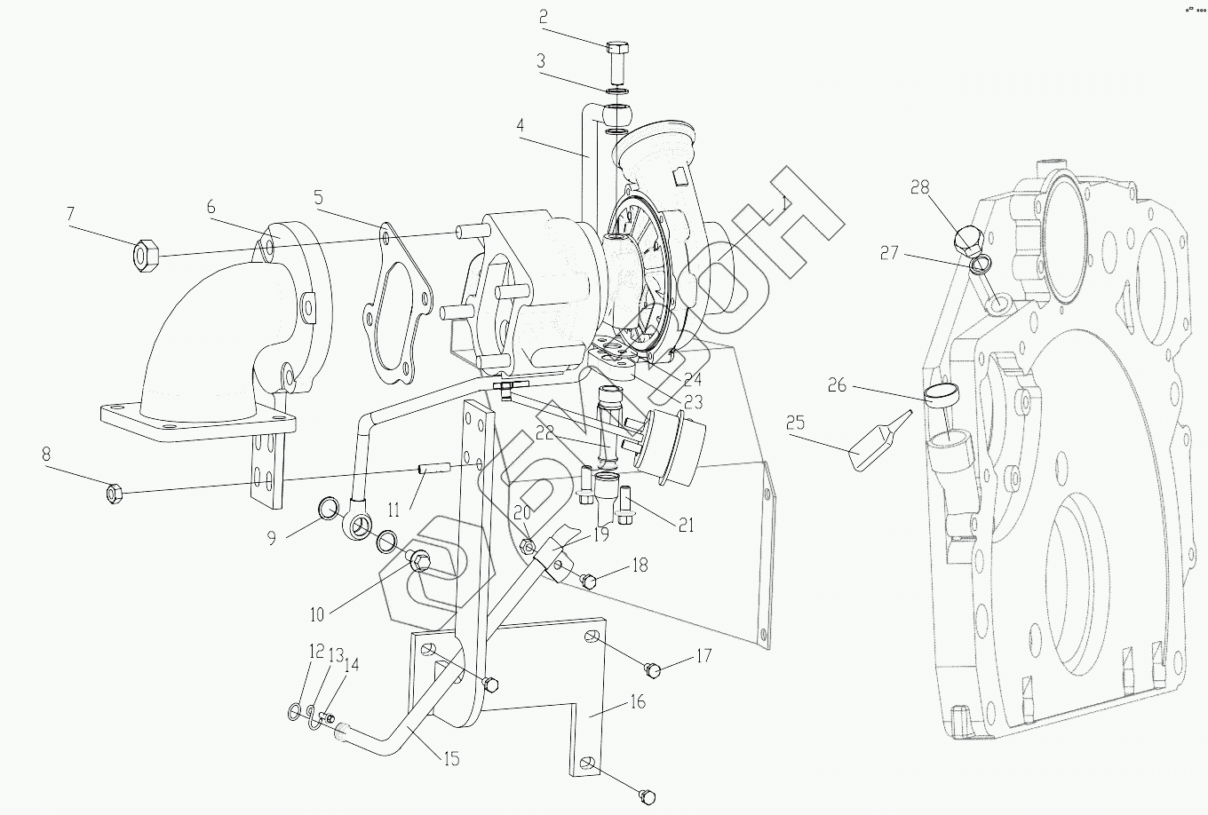 | 4 | 1118060A84D | Lubricating pipe for turbo charger |