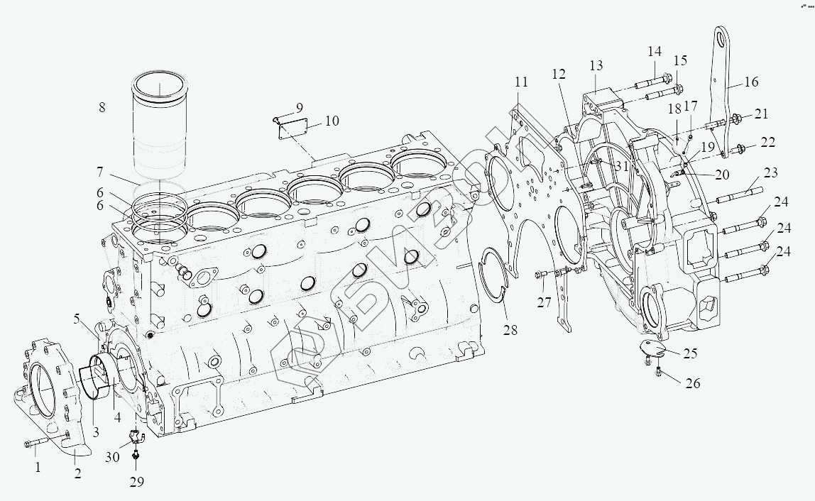 Графический каталог запасных частей к технике: FAW CA 6DM2. Блок цилиндров