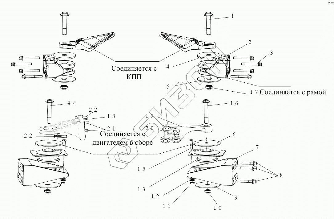| 13 | 1001025-76А | Подушка передней подвески двигателя в сборе |
