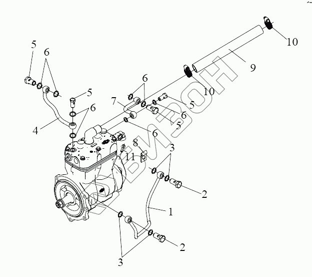 | 7 | 3509030-81D | Впускной водопровод насоса воздушного компрессора в сборе |