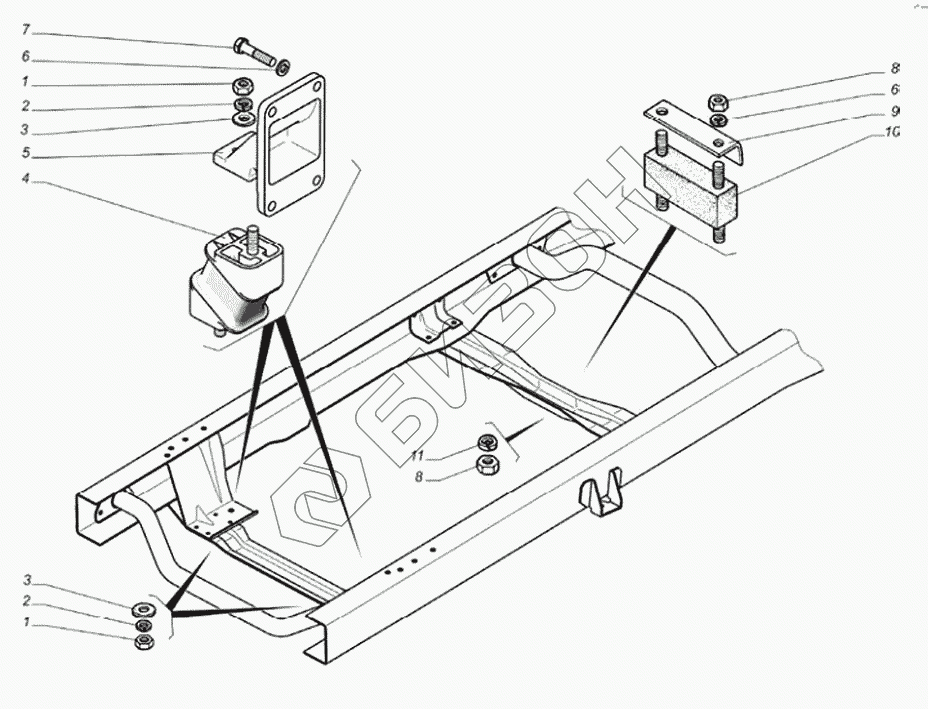 Графический каталог запасных частей к технике: ГАЗ-560. Подвеска двигателя