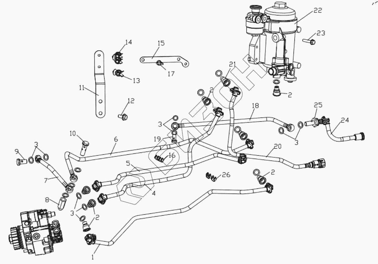 | 6 | 081V12305-5304 | Fuel leakage pipe from pump to filter |