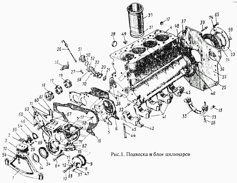 Графический каталог запасных частей к технике: ММЗ Д-242. Подвеска и блок цилиндров