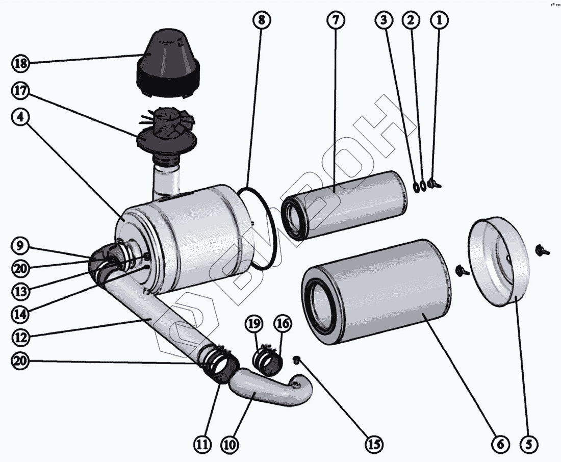 Графический каталог запасных частей к технике: ММЗ Д-245.2S2-827. Воздухоподводящий тракт