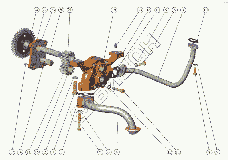 | 15 | Д08-002-А | Втулка корпуса масляного насоса |