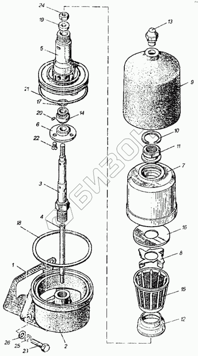 Графический каталог запасных частей к технике: ММЗ Д-260.1. Центробежный масляный фильтр